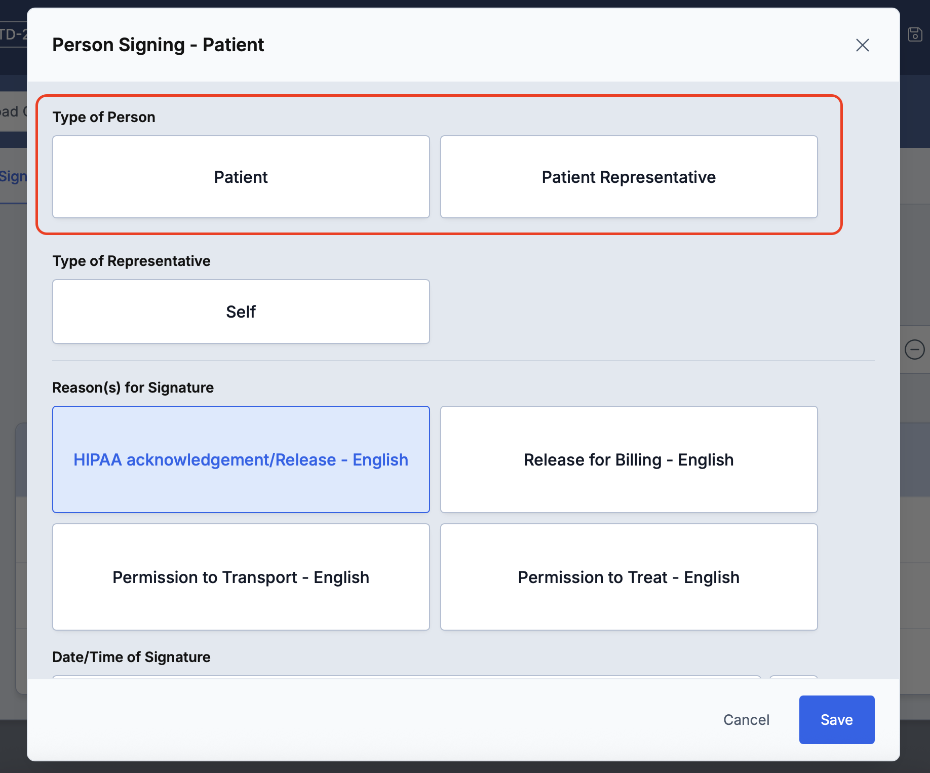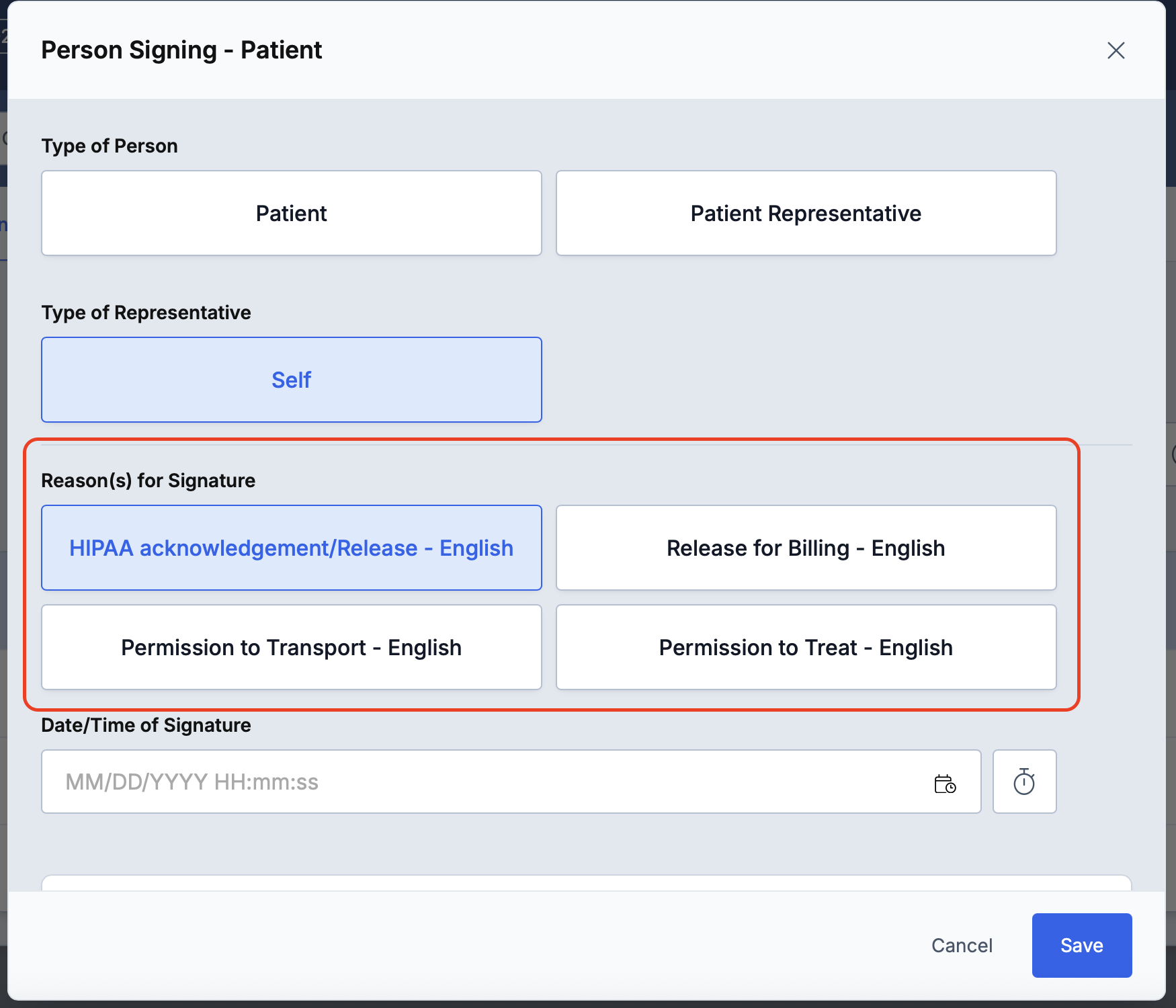 Purpose Statement This feature enables EMS field personnel to obtain appropriate signatures while completing electronic Patient Care Reports (ePCRs) in First Due. Patient signatures provide legal documentation of consent, refusal of care, or ...