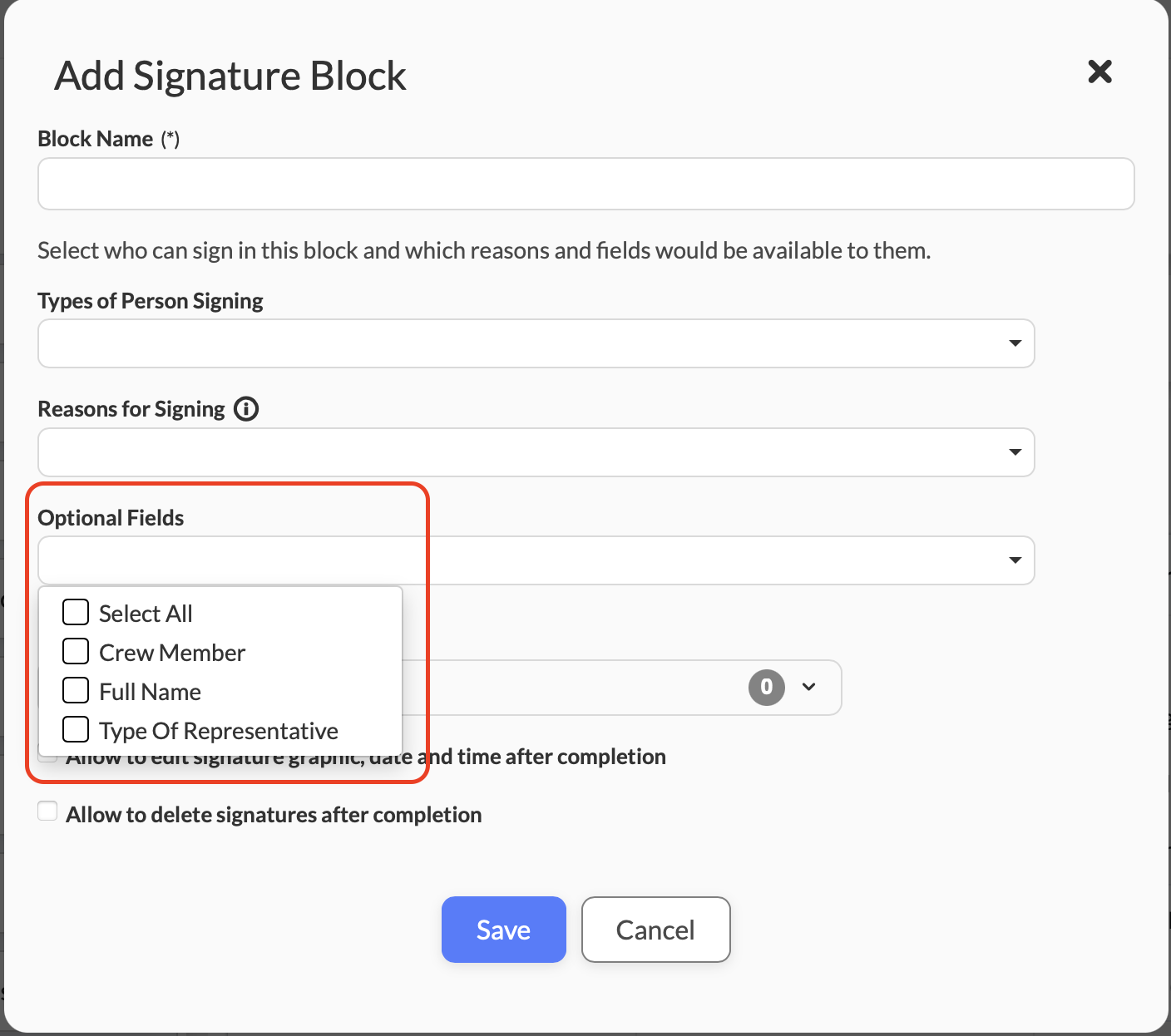A: Review the Types of Person configuration for each signature block and adjust selections to match actual use cases. Remove unnecessary options to reduce confusion.