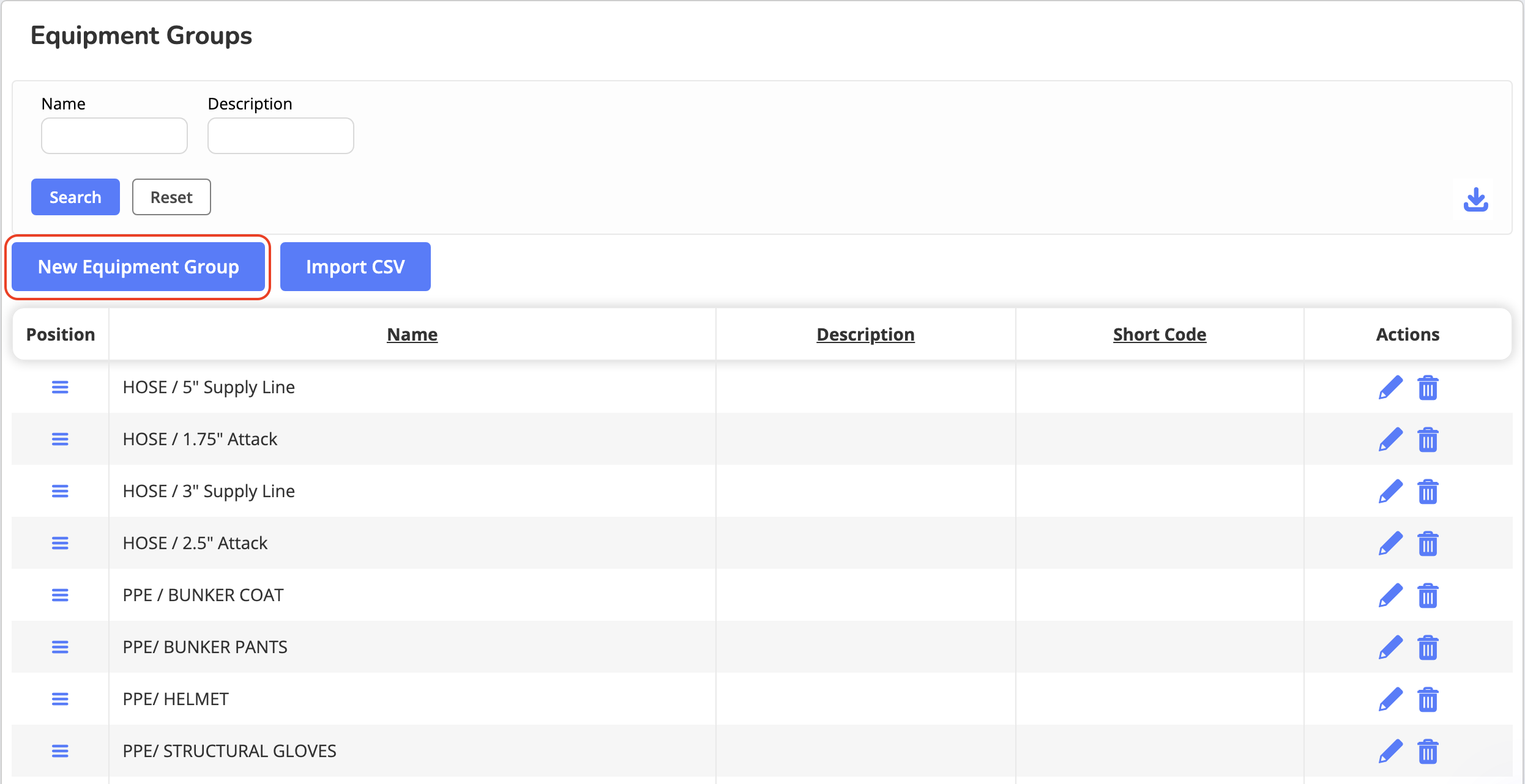 Create groups that support inspections (example: “Engine Company Equipment”).