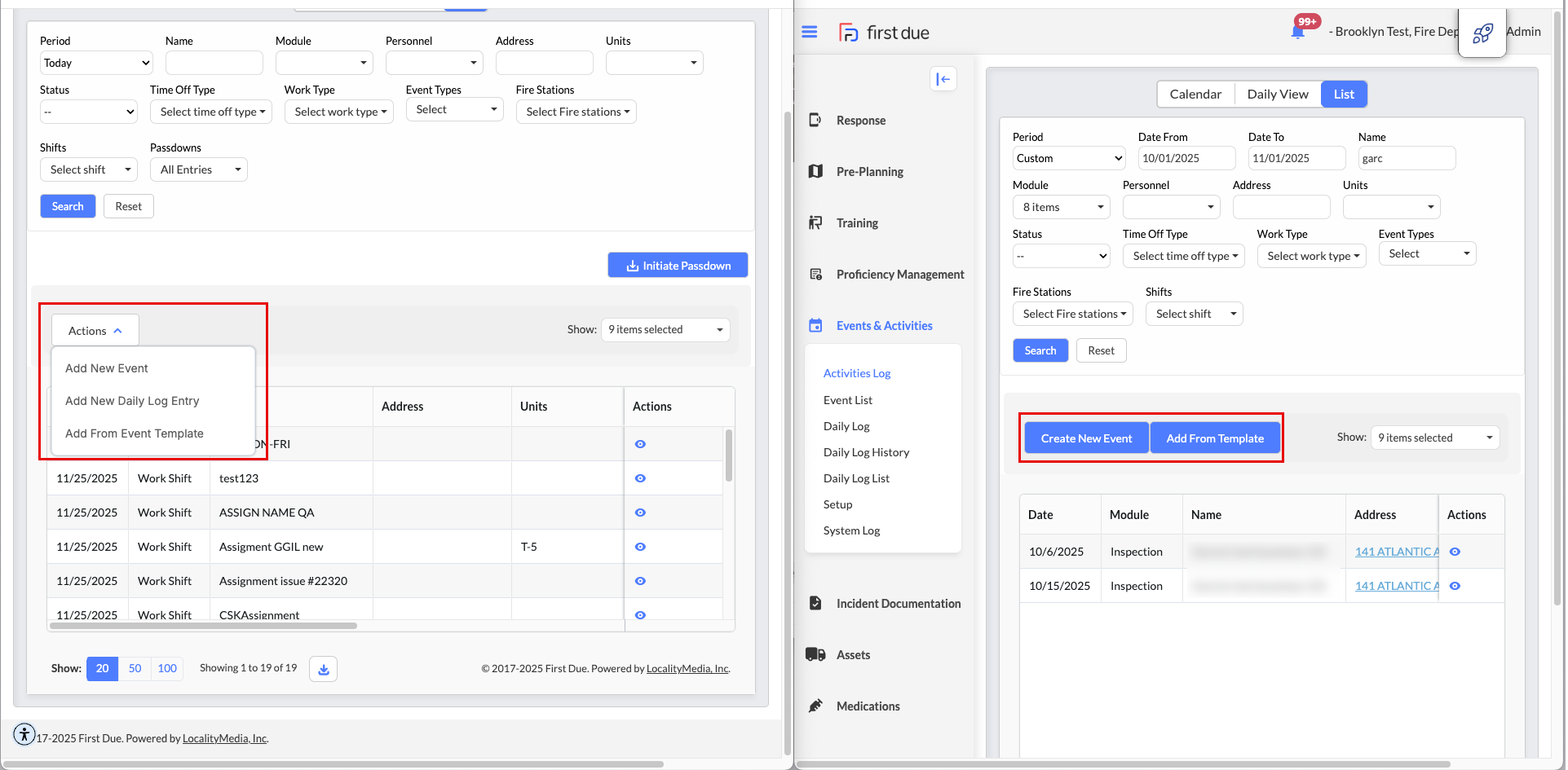 To successfully use Daily Operations and Passdown, users typically need permissions within the Events & Activities module. Exact role names may vary by agency configuration, but ensure users have access to: