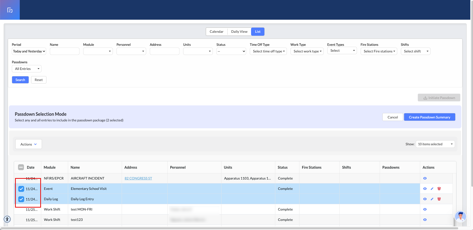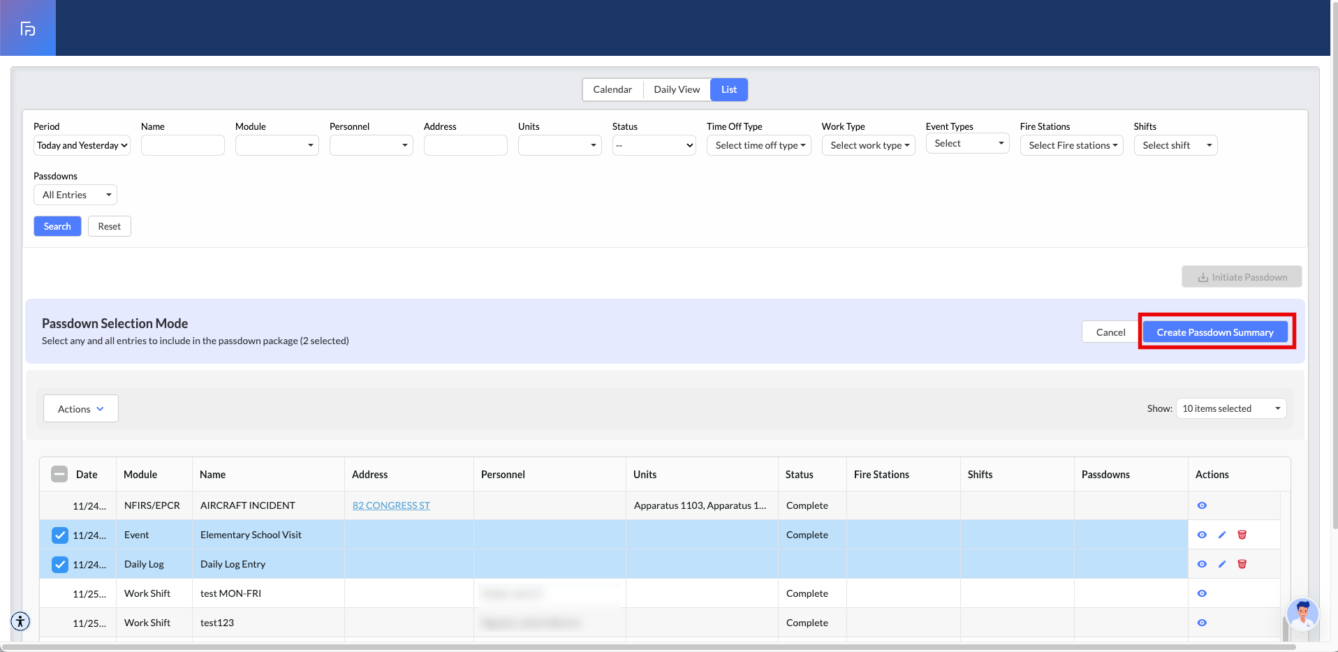 Required to select items, generate a Passdown summary, and create/view the PDF.