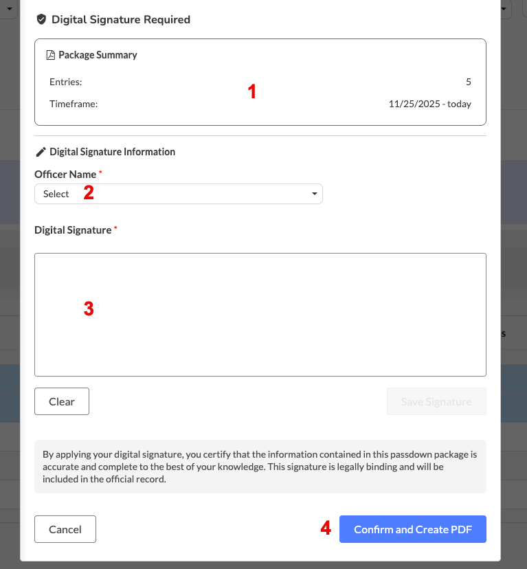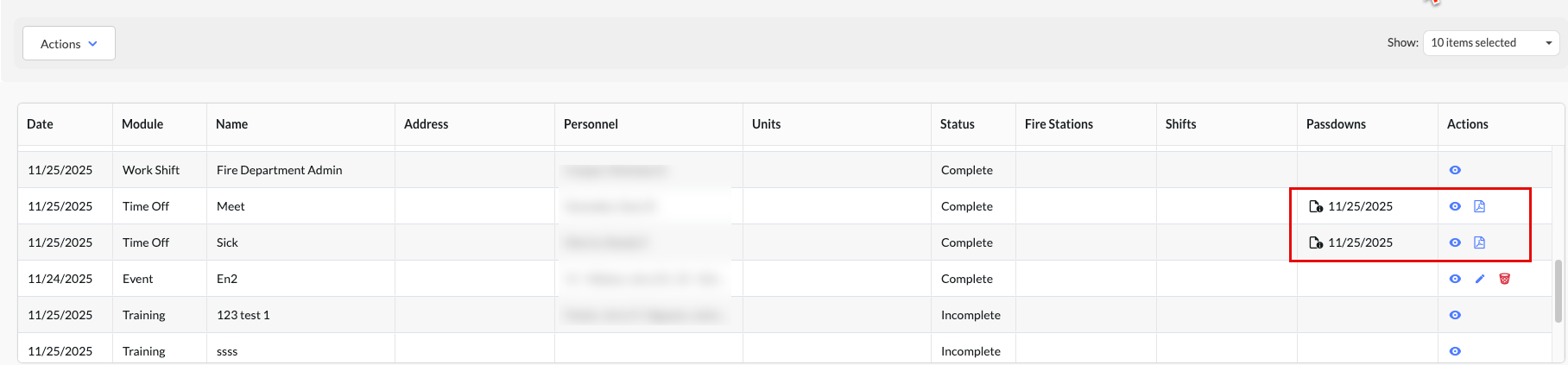 Double-check selections before generating the Passdown. The PDF represents a formal shift handoff record for that time period.