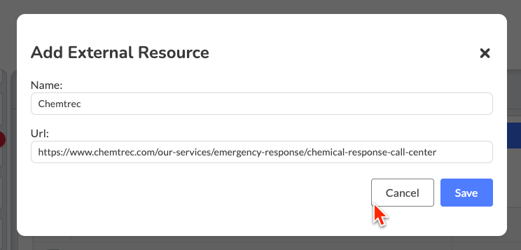 Q: The external resource link isn't working when clicked from the incident report. What should I do? A: Verify that the full URL was copied correctly, including "https://" or "http://". Edit the resource and re-paste the URL from your browser. Also check that the website hasn't changed its address.