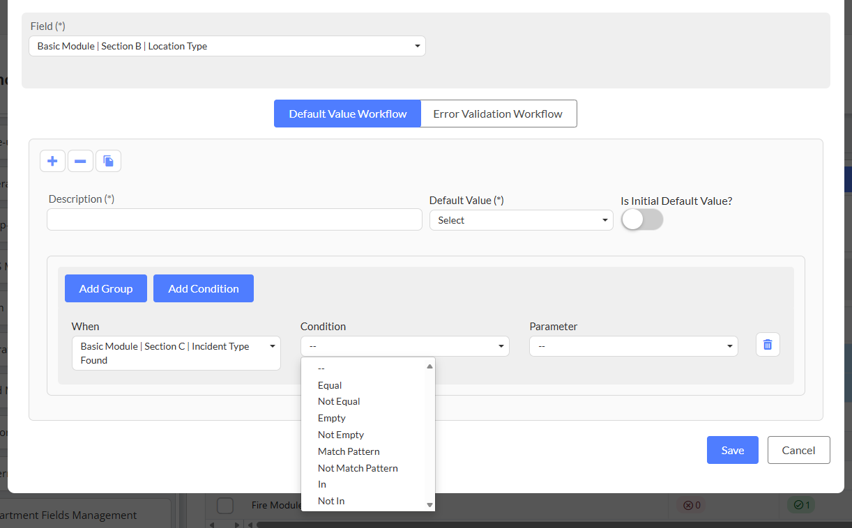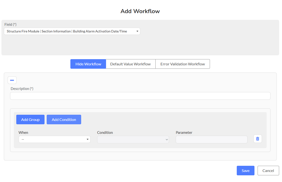 The purpose of this article is to demonstrate the steps for creating and managing workflows for Fire documentation. Fire Incident workflows enable departments to customize form behavior through Hide, Default, and Error validation processes, ensuring data accuracy and streamlining incident reporting for field personnel and administrators.