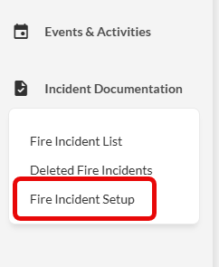 Navigate to the Incident Documentation module and then Fire Incident Setup
