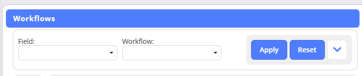 Use the search functionality to locate existing workflows by Field or Workflow name, then select Apply to filter results