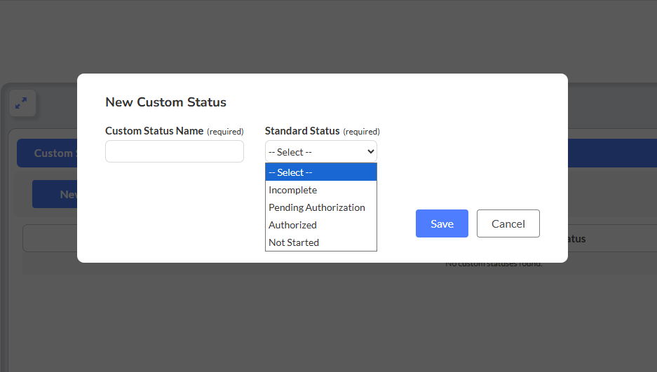 Select a Standard Status to associate with the custom status from the dropdown menu