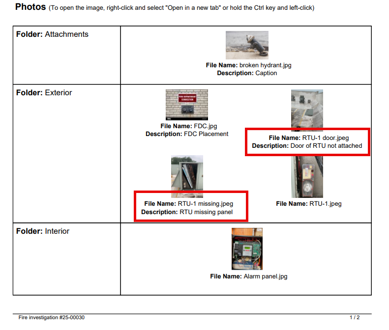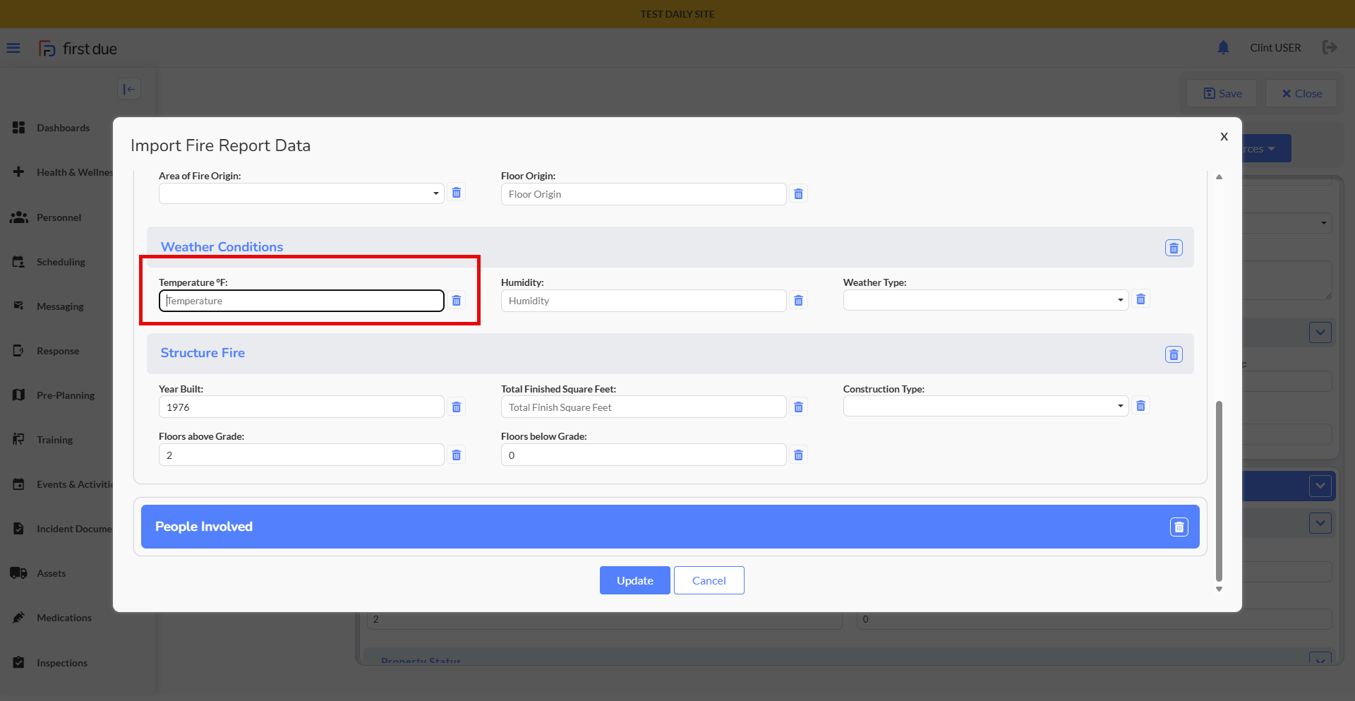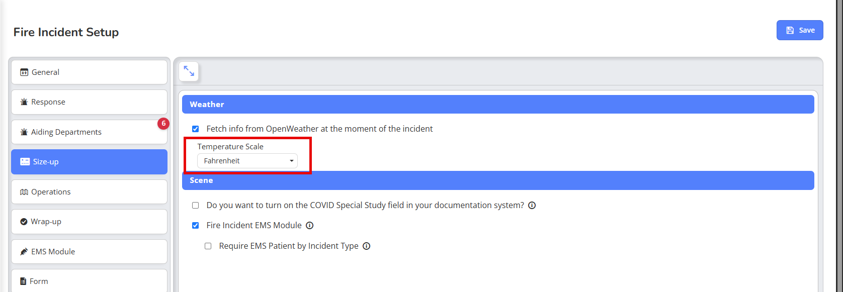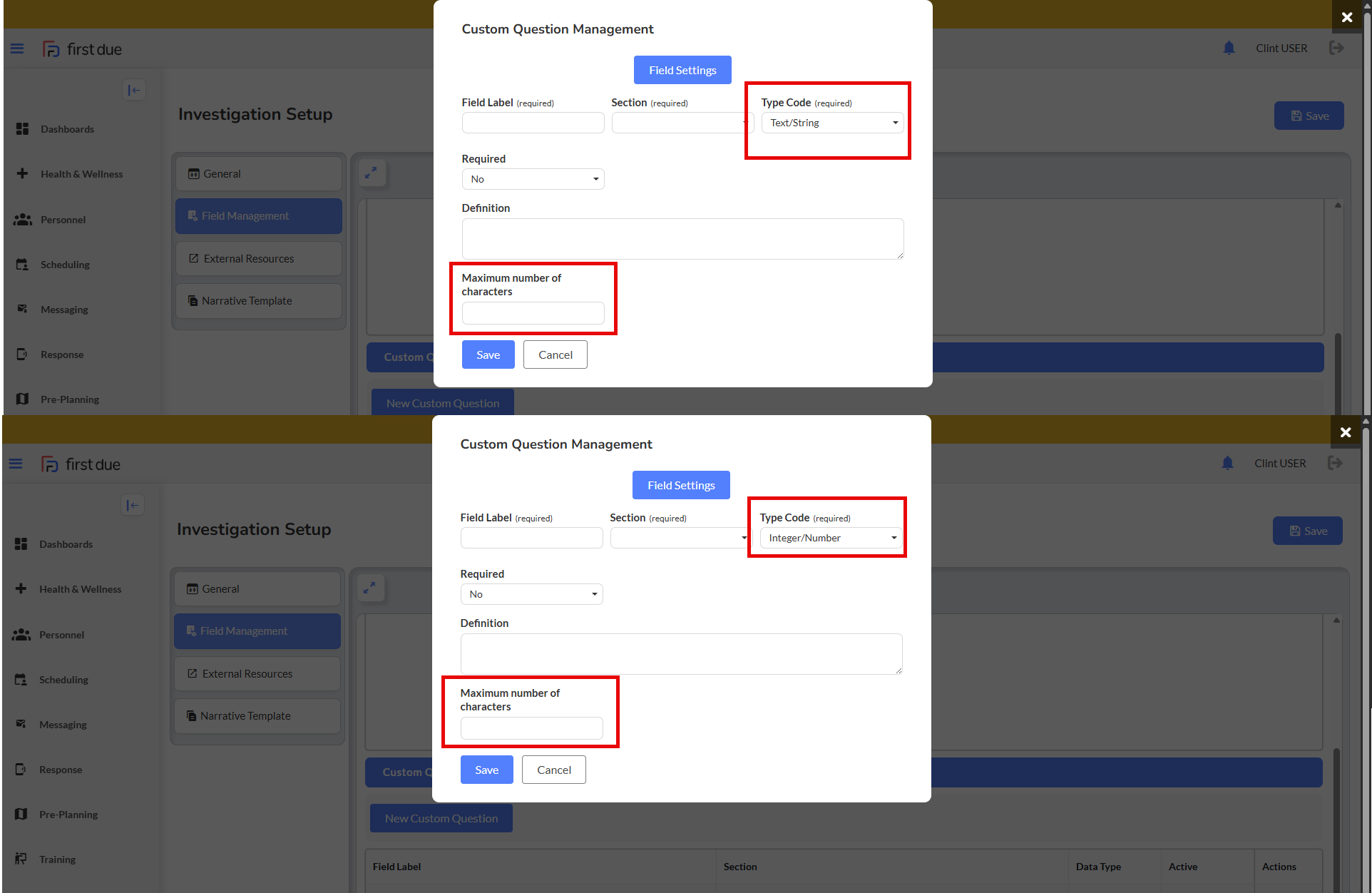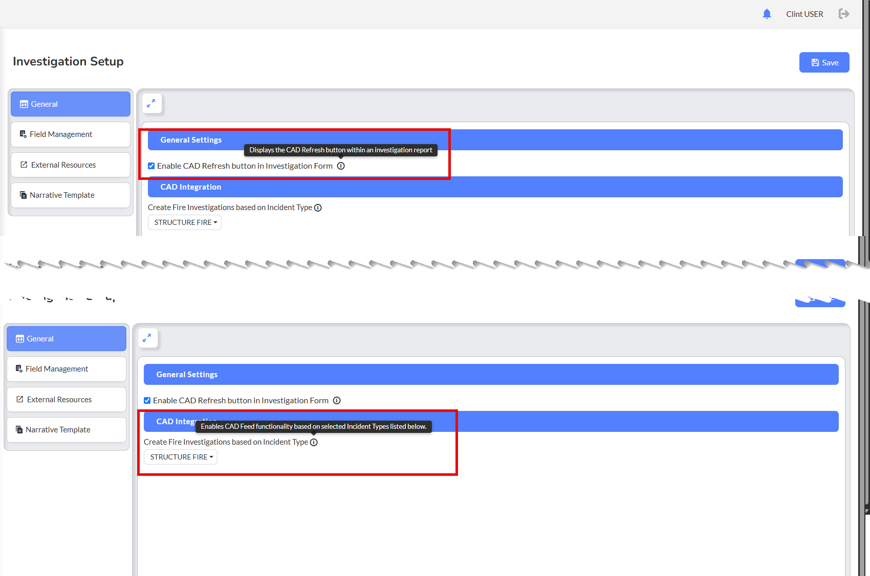 Fire Investigation Setup saves show the specific Field ID that was modified