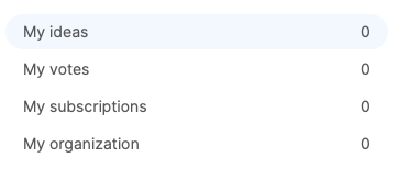 Access Personal Dashboards: Navigate to "My Ideas," "My Votes," or "My Subscriptions" to manage your personal activity
