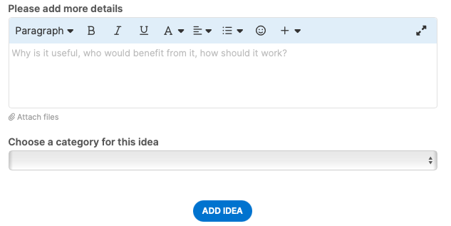 Complete Submission: If your idea is unique, add comprehensive details and click "Add Idea" to submit your suggestion