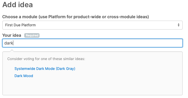 Review similar suggestions and consider voting for existing ideas rather than creating new ones