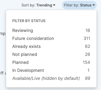 Apply Status Filters: Filter ideas by their current development status to track progress on submissions of interest