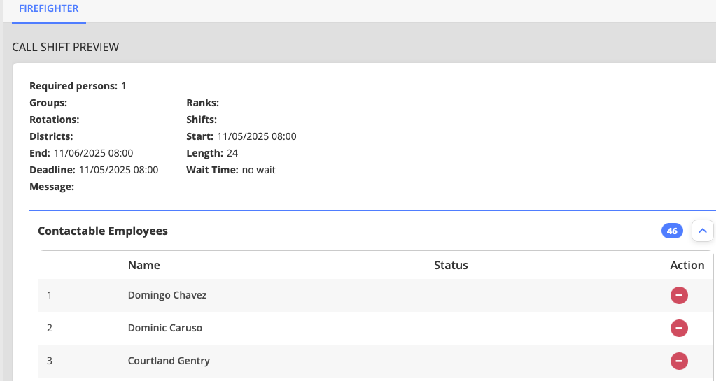 Call shifts are essential for managing unplanned absences, increased service demands, or specialized staffing needs in fire and EMS operations. The system automates what would otherwise be a time-consuming manual process of contacting qualified personnel individually. By setting qualification criteria, response deadlines, and tiered notification options, administrators can quickly fill open positions while maintaining compliance with department policies and collective bargaining agreements.