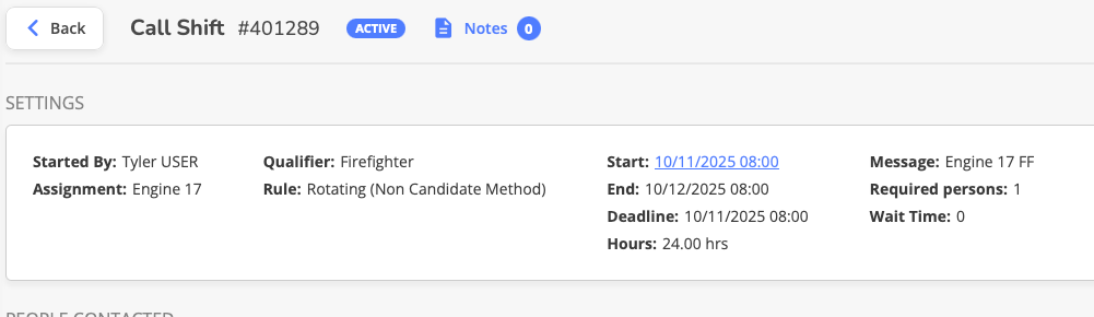 Q: How do I know who received the notification? A: The Call Shift History page shows all personnel who were sent the notification, along with their response status (viewed, accepted, declined, no response).
