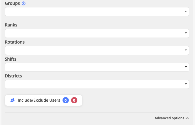 Apply additional filters using Advanced Options if needed (Groups, Ranks, Rotations, Shifts, Districts)