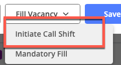 Hover over the Fill Vacancy button and select Initiate Call Shift from the dropdown menu.