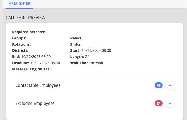 Q: No one is responding to my call shift. What should I do? A: Check your deadline - it may be too short. Consider extending the deadline, increasing the pay rate, or expanding your filter criteria to include more personnel. You can also manually contact personnel as a backup.