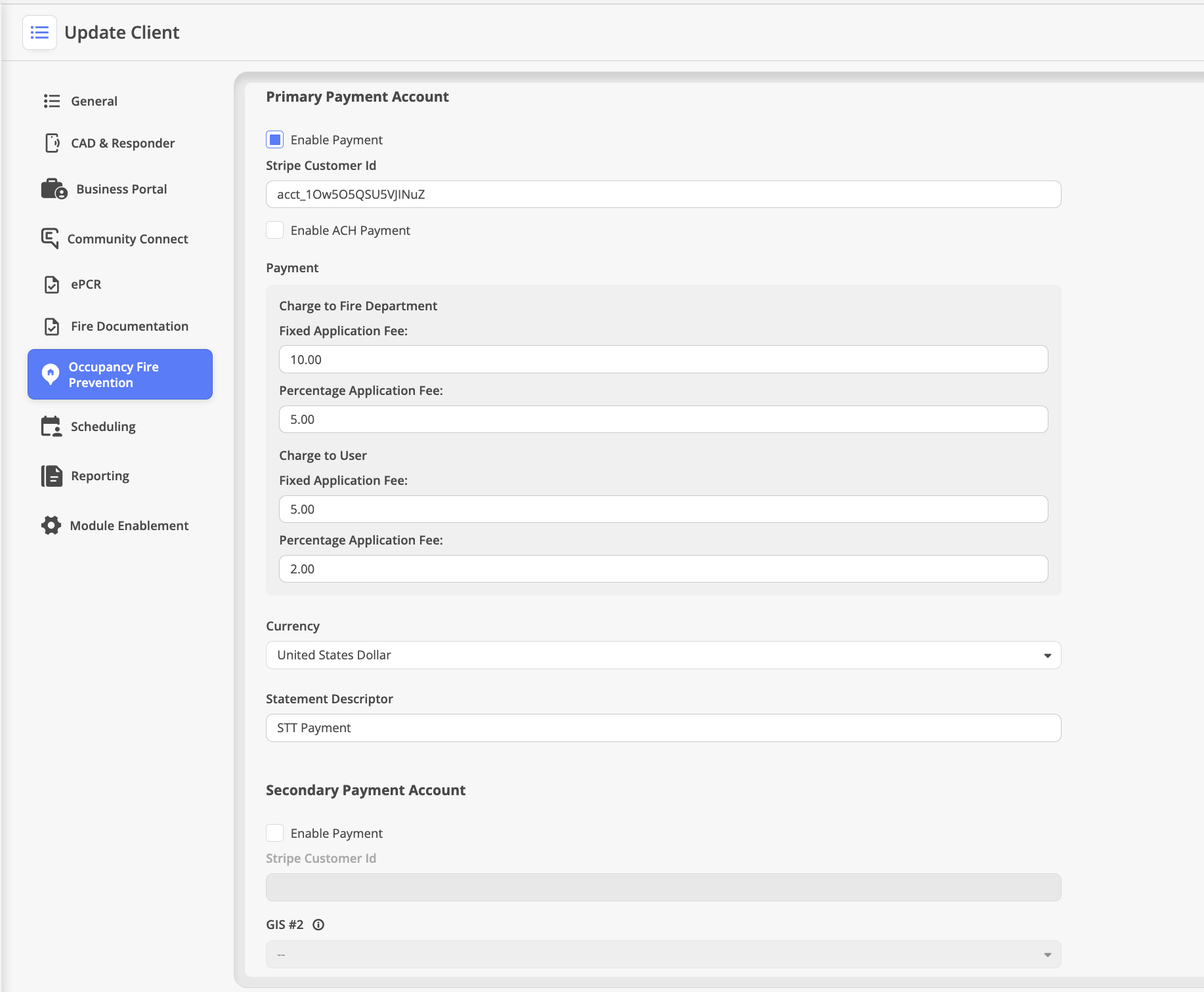 Enable the Secondary Payment Account and select a Billing Zone (GIS #2) value