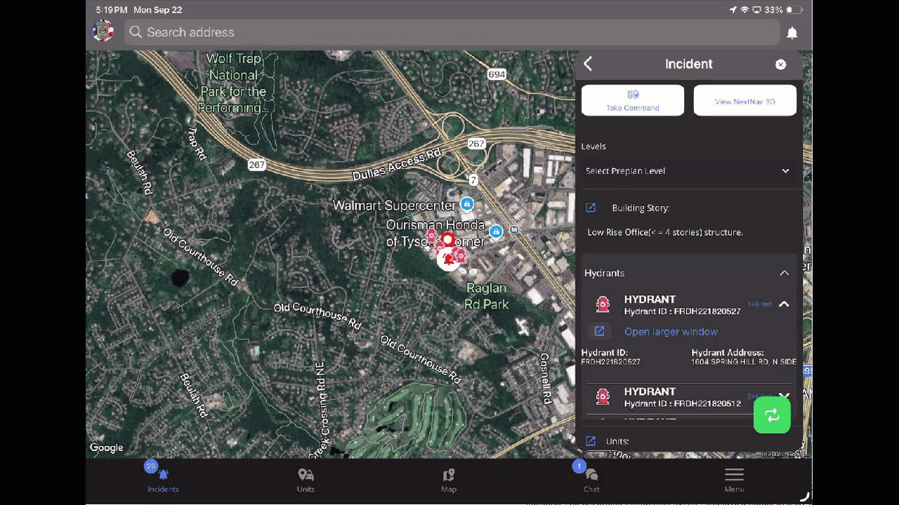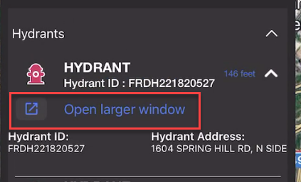Why: When the user selects the nearest hydrants from the incident, the button for "Open larger window" magnifies the text in a new window to make it easier to read.