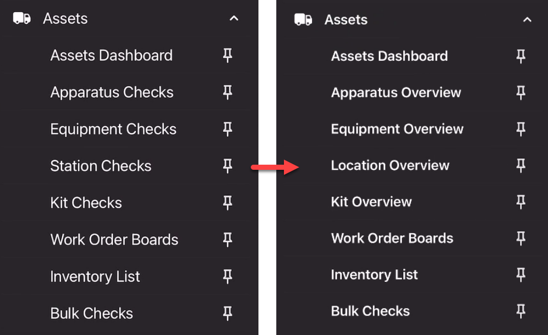 - What: Updated labels in Assets module of the app from "Checks" to "Overview" and added "Location Overview".