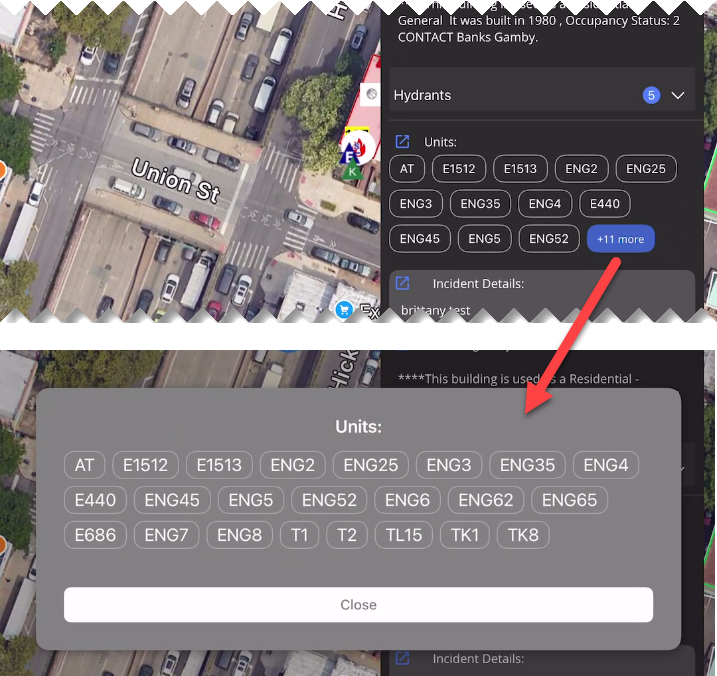 Why - This change helps keep the Incident Details view readable and focused, especially during complex events that involve many responding units. Instead of forcing users to scroll through long unit lists that can crowd out other critical information, the condensed view surfaces the most relevant units at a glance while still providing a one-tap path to see every dispatched unit when deeper detail is needed. This improves situational awareness and reduces visual clutter without sacrificing access to complete unit information.