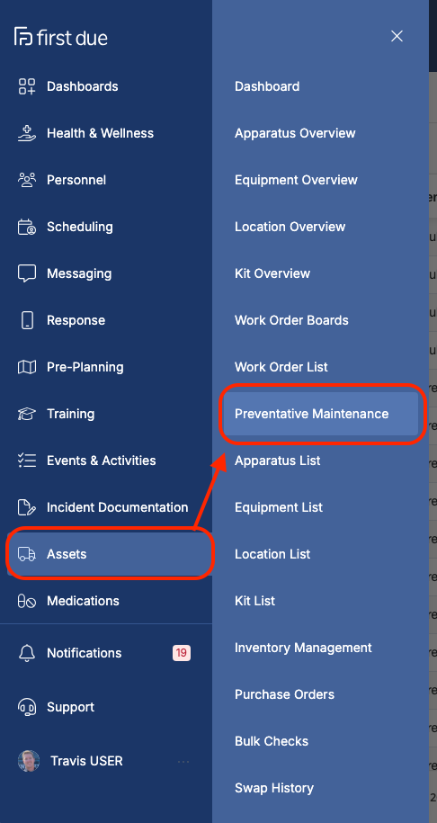 Within the Assets module, click Preventative Maintenance.