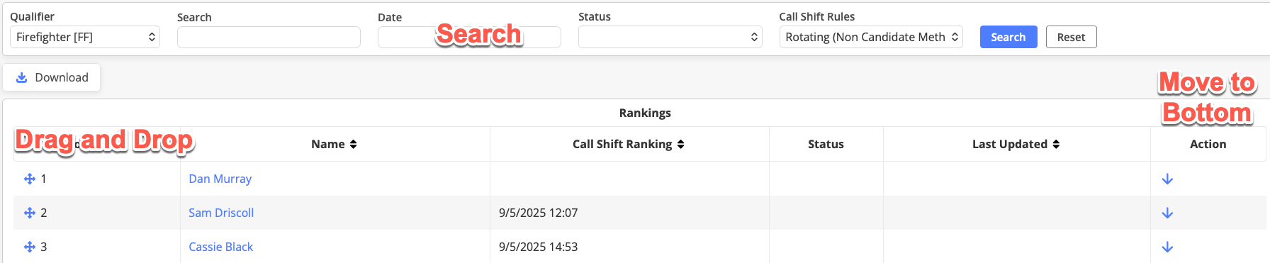 Purpose Statement The Call Shift Rankings feature allows administrators and supervisors to view, monitor, and manage the order in which personnel are contacted for call shifts based on configured qualifier rules. This tool provides transparency into ...