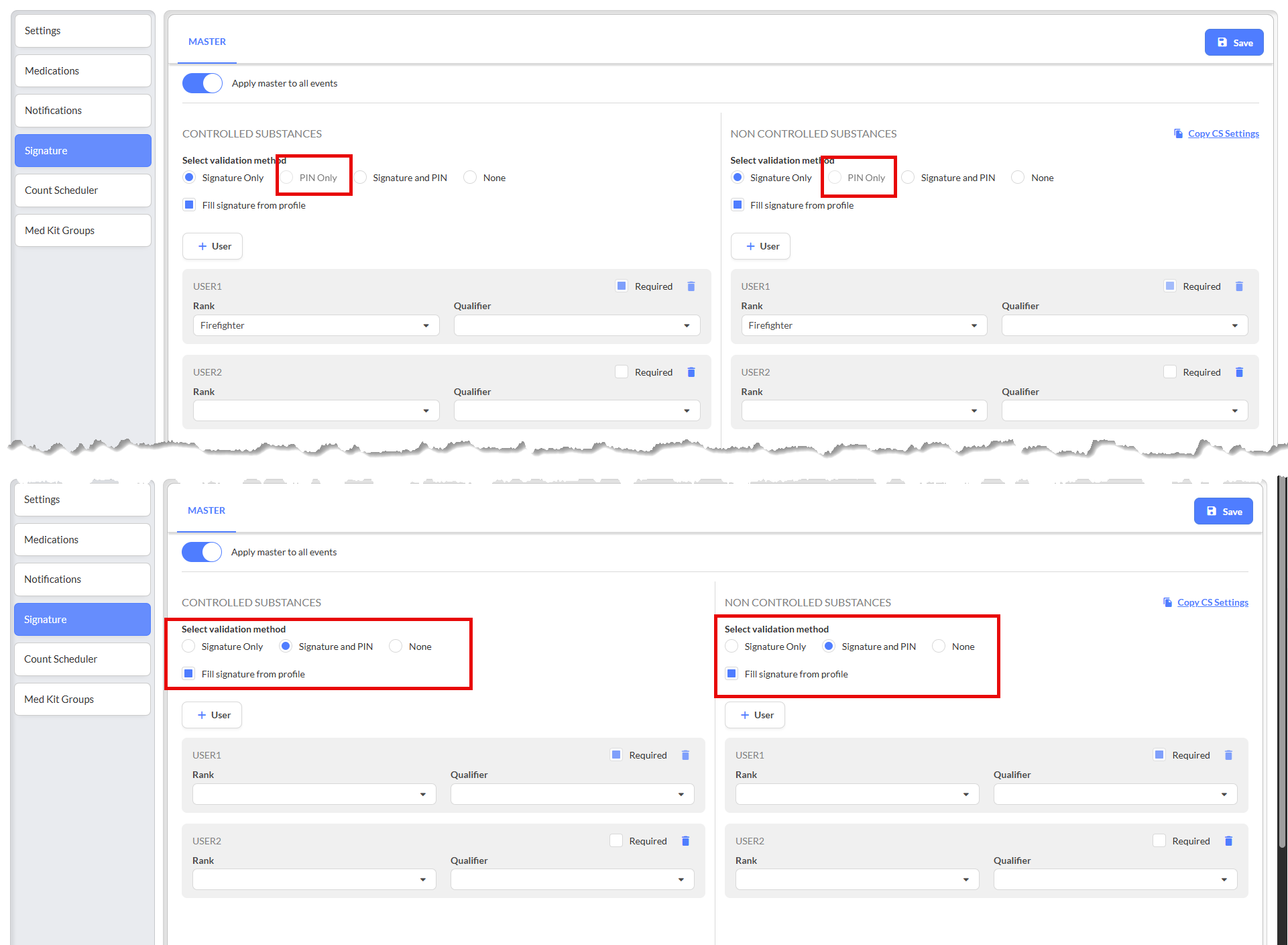 When configuring medication signature requirements, administrators now see a cleaner, more focused set of options, making it easier to select and manage the appropriate signature method without uncertainty or unused settings.