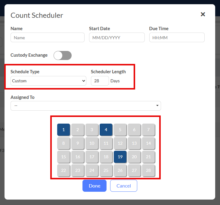 Medication counts and custody exchanges are critical for maintaining controlled substance compliance and operational readiness. The Count Scheduler enables administrators to: