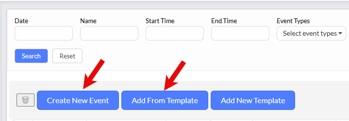 Template Event: Click "Add from Template" to create an event using pre-configured template settings
