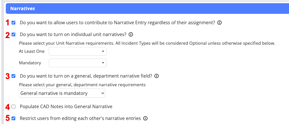 Option 2: Select the incident types where unit narratives are considered mandatory