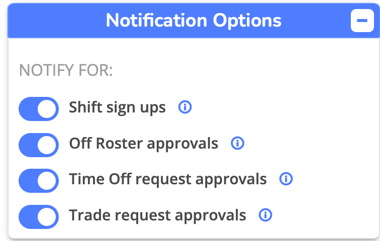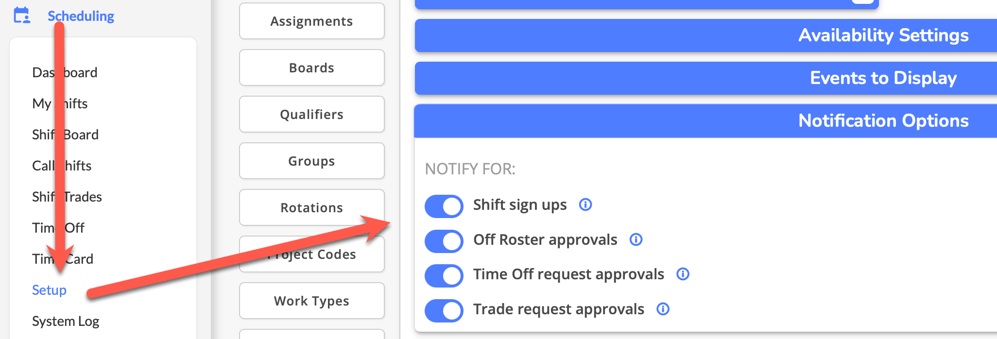 Purpose To explain the Call Shift Notification Options within the setup menu. These notifications allow you to receive updates on Call Shifts. These updates can include: When a Call Shift is filled or not filled When a Call Shift is Ready for ...