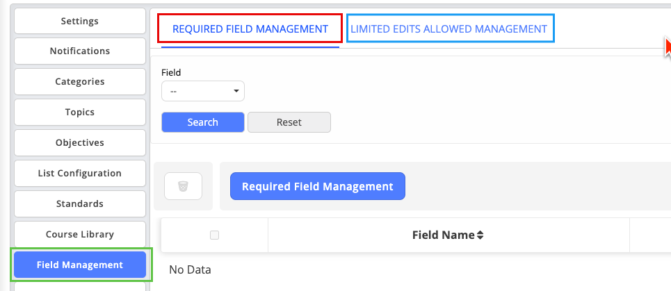 What: Separate tabs for "Required Field Management" (formerly called Field Management) and "Limited Edits Allowed Management."