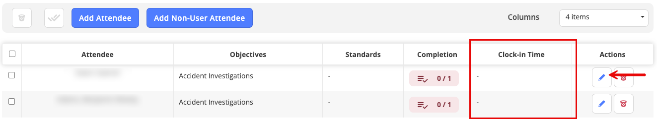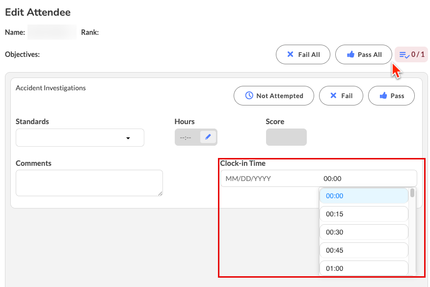 - How: Navigate to the Attendee area within a class, select the pencil icon of the attendee needing adjustment, Modify or Add the appropriate clock in time.