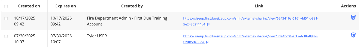 The External Scheduling Link feature allows administrators to securely share scheduling information with external stakeholders, such as mutual aid partners, neighboring departments, or administrative personnel who need view-only access to your department's scheduling data. This feature enables controlled, time-limited access to scheduling information without requiring full system access or creating additional user accounts.