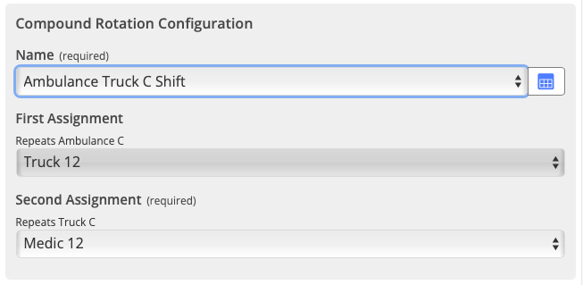 The Compound Rotation feature allows administrators to assign personnel to alternate between two different assignments on consecutive days within a single rotation cycle. This functionality ensures seamless staffing coverage when personnel need to work across multiple stations, apparatus, or roles while maintaining proper rotation tracking and compliance with labor agreements.