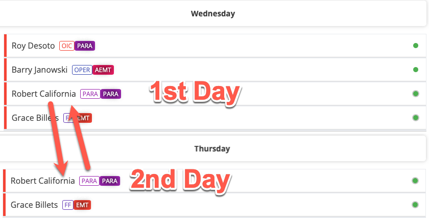 Issue: Personnel shows on the same assignment for multiple consecutive days
