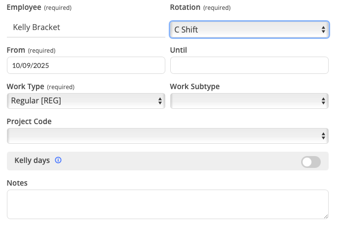 Verify Rotation Selection: Double-check that the selected rotation matches the employee's actual work schedule before saving