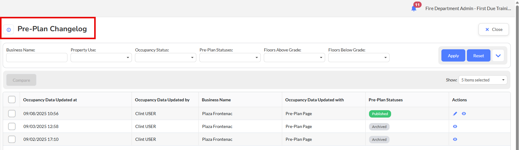 - Use Case: Fire officers reviewing submitted pre-plans can quickly identify specific changes made, compare multiple versions side-by-side, and maintain proper version control during the approval process