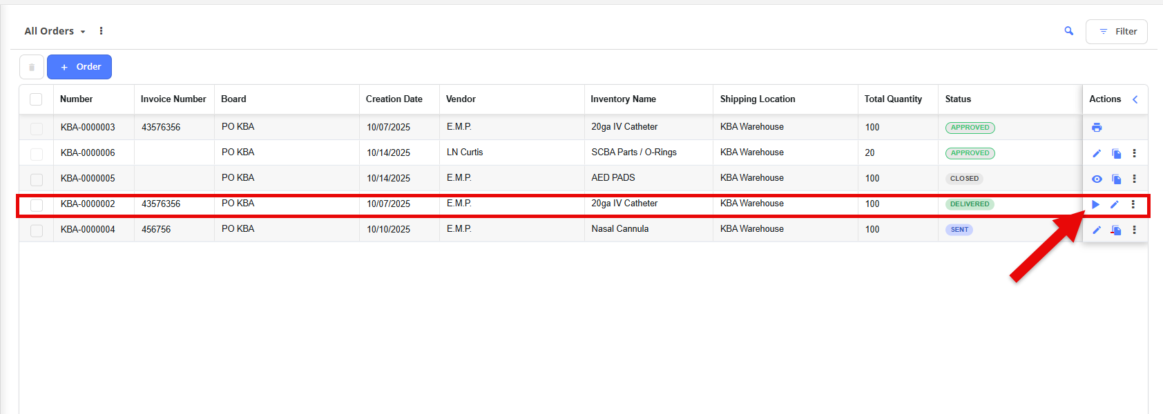 Q: What if some items on the order haven't arrived yet? A: Keep the status as "Shipped" and add comments noting the partial delivery. Only mark as "Delivered" when you're ready to begin the receiving process for the items that did arrive, or wait until all items arrive.