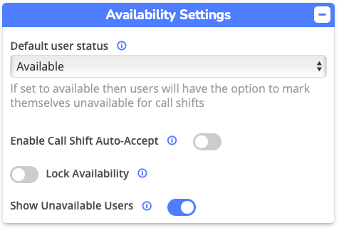 Use Case - A battalion chief planning coverage for an upcoming holiday period needs to see both available and unavailable personnel to understand the full staffing picture. With the "Show unavailable" toggle enabled in Scheduling Settings and the can_view_unavailable_users permission granted, the chief navigates to the Availability tab, activates the available filters, and clicks the "Show unavailable" toggle. The system displays all personnel with unavailable users visually distinguished (perhaps marked with approved vacation time), allowing the chief to identify gaps and plan callback assignments. The toggle preference is saved, so when the chief returns to this tab later, the view remains consistent with their previous selection.