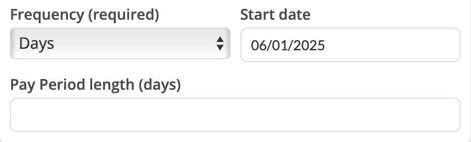Set the pay period length (e.g., 7 days, 14 days, 21 days)
