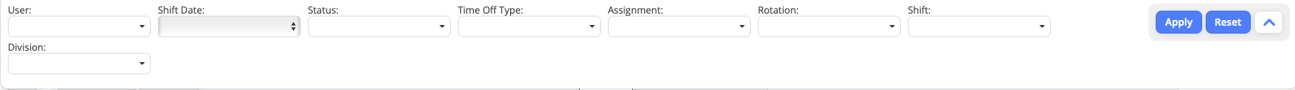 Available filters may include: employee name, date range, shift assignment, request status, and leave type