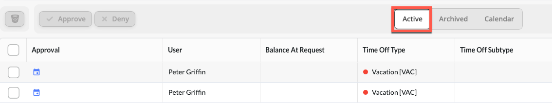 Review Active Time Off Requests