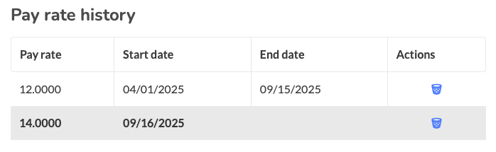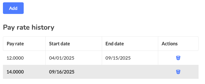 Q: The new pay rate isn't appearing in scheduling calculations A: Verify the start date is set correctly and the rate has been saved. Check that no conflicting pay rates exist for the same time period.