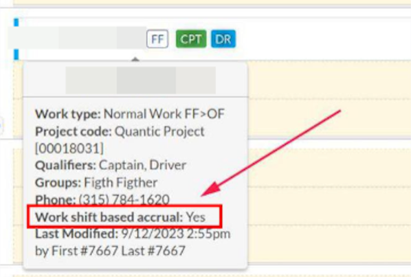 Look for the compensatory time accrual indicator that displays whether the user is receiving comp time for that shift
