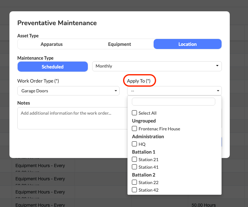 Setting up Preventative Maintenance for Locations