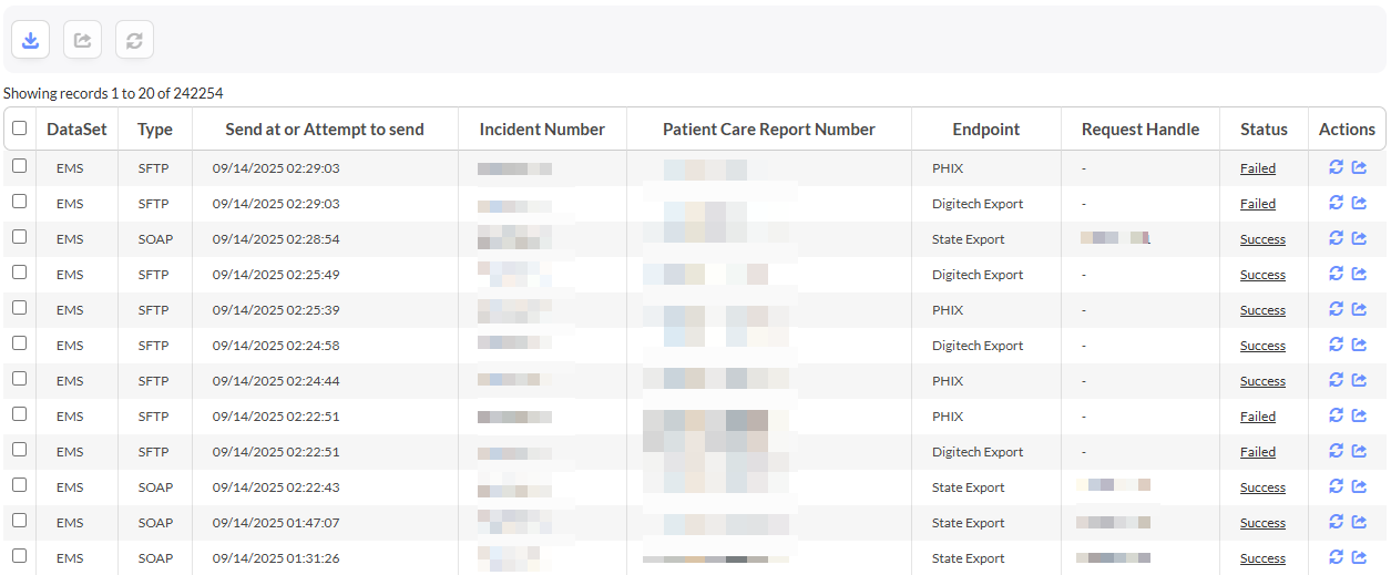 Q: Multiple exports show "Failed" status A: Check endpoint connectivity and configuration settings. Verify network connectivity to state reporting systems and contact your system administrator if issues persist.