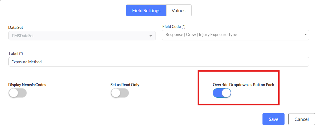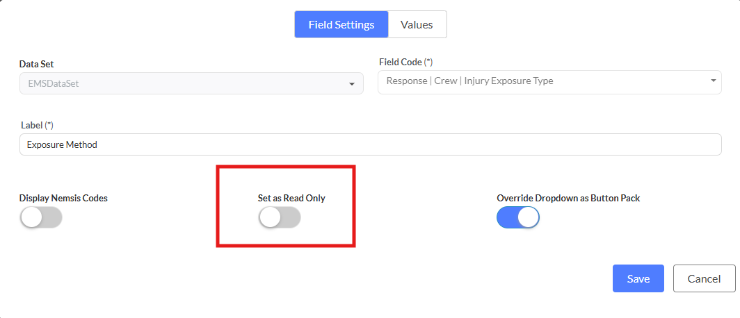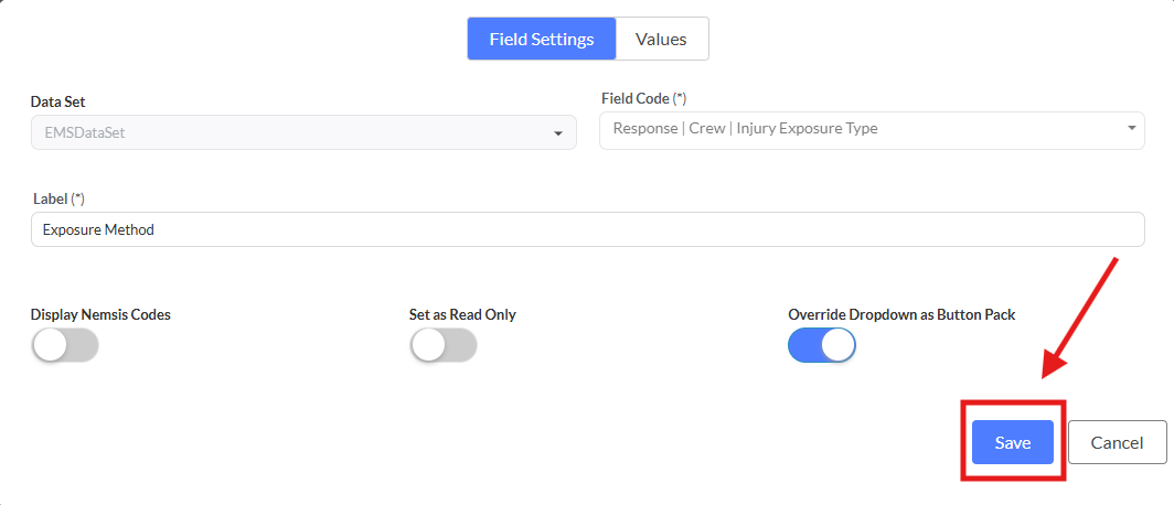 4. To edit, disable, or rearrange the values in a field's dropdown list of choices, click on Values.