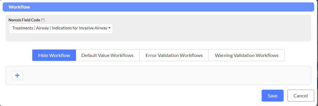 Hide workflow: Field will be hidden inside the ePCR when conditional rules are satisfied.